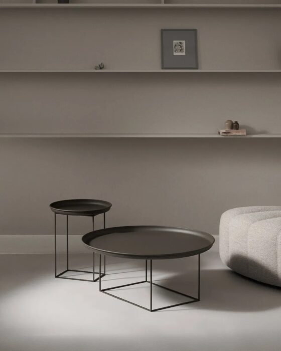 Det pulverlakerede stål giver bordet en robust kvalitet og en elegant finish, mens den dybe /Lacquered Maroon farve tilfører varme og personlighed til indretningen. Duke-serien er designet med fokus på funktionalitet og æstetik, hvilket gør bordet ideelt til både stue, loungeområde eller som et dekorativt element i moderne hjem.