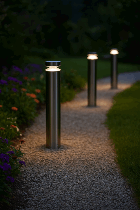 Elegant og funktionel udendørsbelysning i rustfrit stål.