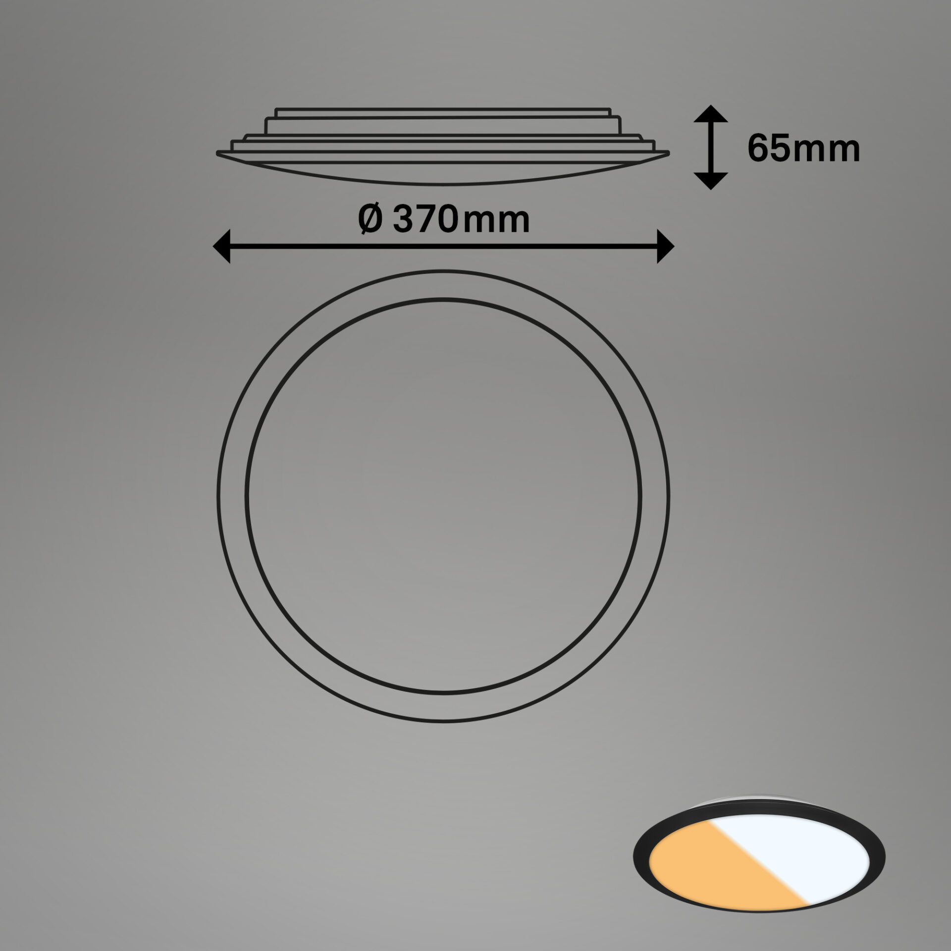 Lampen måler Ø 37 cm og har en højde på 6,5 cm, hvilket giver et slankt og diskret udtryk, der passer perfekt i moderne hjem. Uanset om den placeres på badeværelset, i entreen, soveværelset, køkkenet eller stuen, bidrager den med et rent og harmonisk lysdesign.