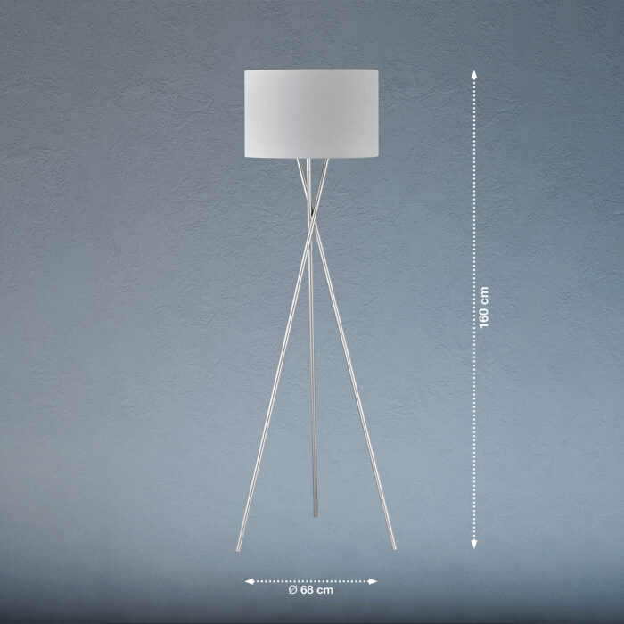 Pina gulvlampen i mat nikkel kombinerer klassisk elegance med moderne funktionalitet. Med sit slanke stel og den grå lampeskærm i højkvalitets hørstof er lampen både en stilfuld lyskilde og et dekorativt element i hjemmet. Skærmens hvide inderside sikrer et optimalt lysudbytte, som giver rummet en behagelig og afbalanceret belysning.