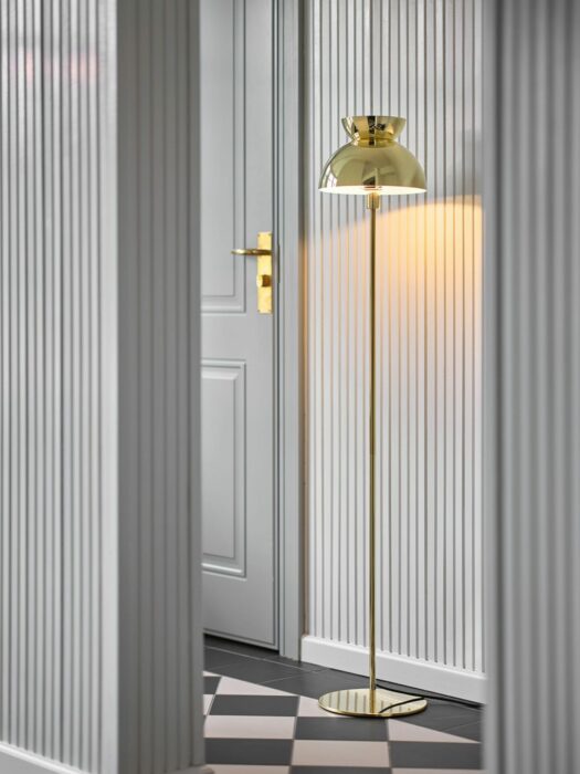 Frandsen Butterfly gulvlampe i metal designet af Toni Rie. Elegant nordisk design med blød og stemningsfuld belysning til hjemmet.