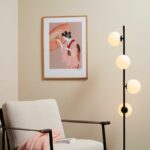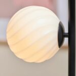 Med sin højde på 150 cm og fire elegante glasskærme giver gulvlampen et behageligt, diffust lys, der både er velegnet som stemningsbelysning og som et markant designelement i indretningen. Den sorte base og metalramme tilfører et eksklusivt og tidløst udtryk, der passer perfekt ind i alt fra moderne til klassiske hjem.