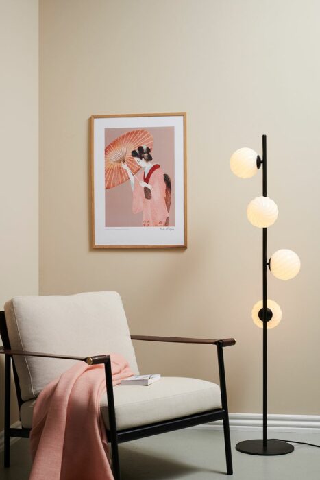Twist 4 Gulvlampe fungerer smukt alene som et blikfang, men kan også kombineres med andre lamper i serien for et sammenhængende og personligt designudtryk i hele boligen.