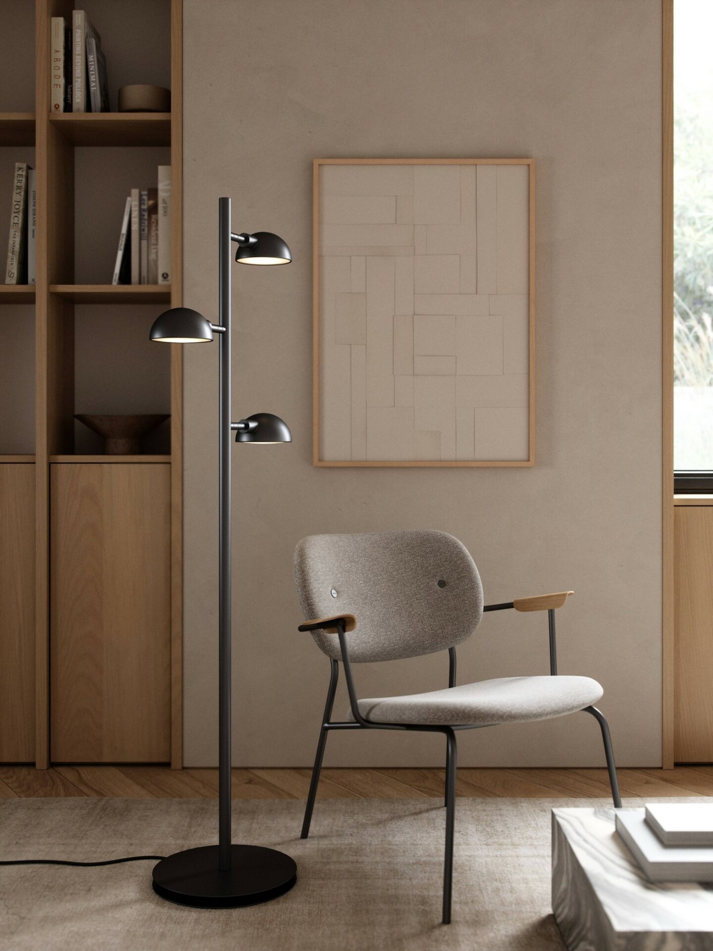 Nomi-serien er designet af Bønnelycke MDD og kombinerer praktisk funktion med elegant udtryk. En gulvlampe, der både løfter rummet visuelt og giver dig det lys, du faktisk bruger i hverdagen.