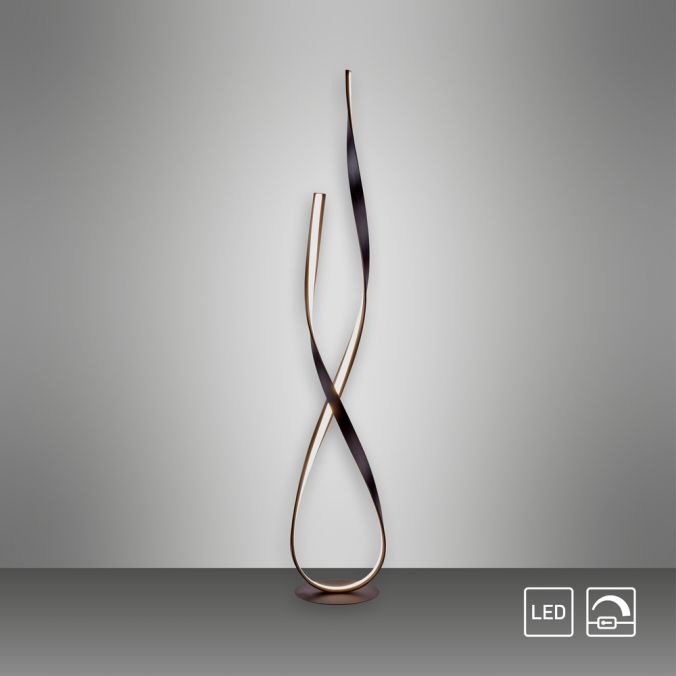 Paul Neuhaus LINDA LED gulvlampe i rustfarvet metal med dæmpbart varmt hvidt lys. Moderne design og energieffektiv LED til stue og soveværelse.
