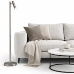 GOMEZ gulvlampe i mat nikkel med LED, justerbar lysfarve og sensor dæmper. Genopladelig batterilampe med USB-C – perfekt til moderne hjem.