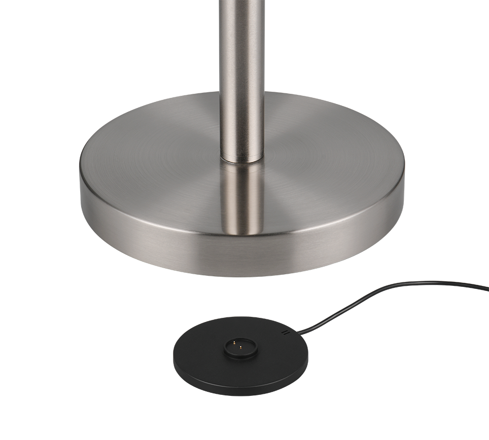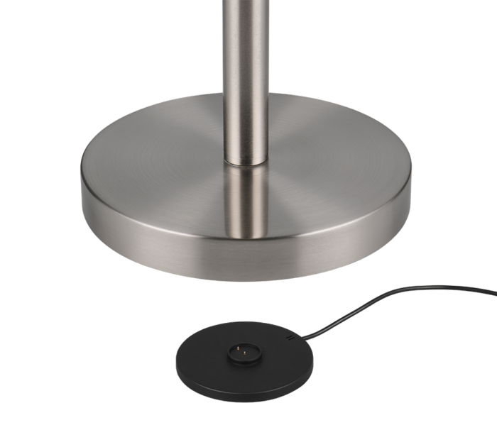GOMEZ gulvlampe i mat nikkel – moderne LED lampe med justerbar lysfarve og genopladeligt batteri