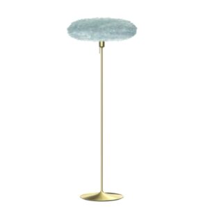 Umage Eos Evia Medium i lyseblå er her samlet som en komplet gulvlampe inklusiv den elegante Santé gulvlampefod i børstet messing. Designet af Søren Ravn Christensen og Anders Klem forener denne løsning to stærke designikoner i én færdig pakke – klar til at skabe stemning i dit hjem fra første øjeblik.
