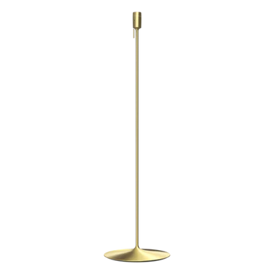 Santé gulvlampefoden i børstet messing løfter designet yderligere med sin rene, minimalistiske form og stabile konstruktion, hvilket gør hele lampen til et markant blikfang.