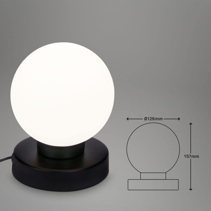 Denne elegante hvid-sorte bordlampe med en enkelt pære, fremstillet af holdbart metal og glas, er det ideelle valg til enhver bolig. Med sit minimalistiske design passer lampen perfekt ind i ethvert rum og bliver hurtigt et centralt blikfang.