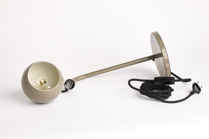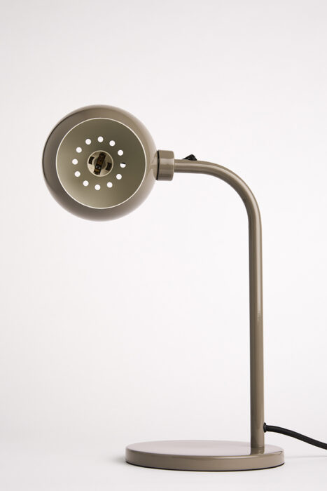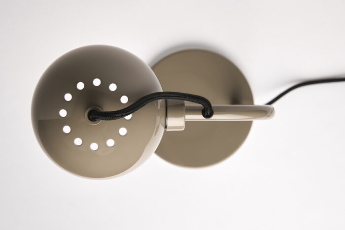 Ball Bordlampe Glossy warm grey er blandt de nyeste tilføjelser til den herlige Ball familie fra danske Frandsen. Den ikoniske runde skærm er blevet elegant påsat en tilsvarende buet arm og simpel base, der bevarer den klassiske minimalistiske elegance, men alligevel tilføjer et nyt element af fleksibilitet. Lampehovedet kan nemlig drejes og tilpasses, så lyset altid falder som ønsket til både arbejde og afslapning.