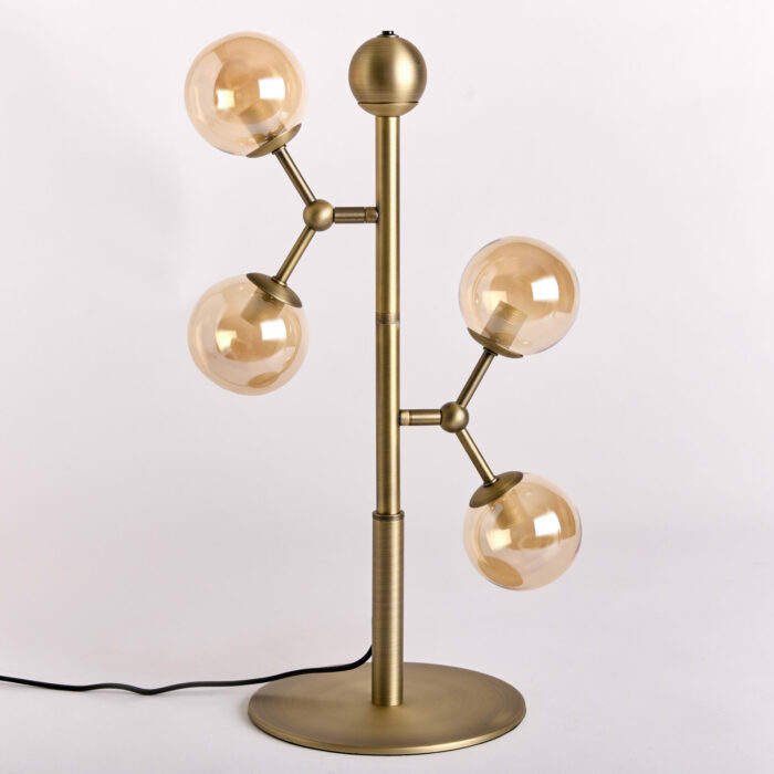 Atom Bordlampe Antique messing fra Halo Design – Elegant Belysning inspireret af Naturens Molekyler