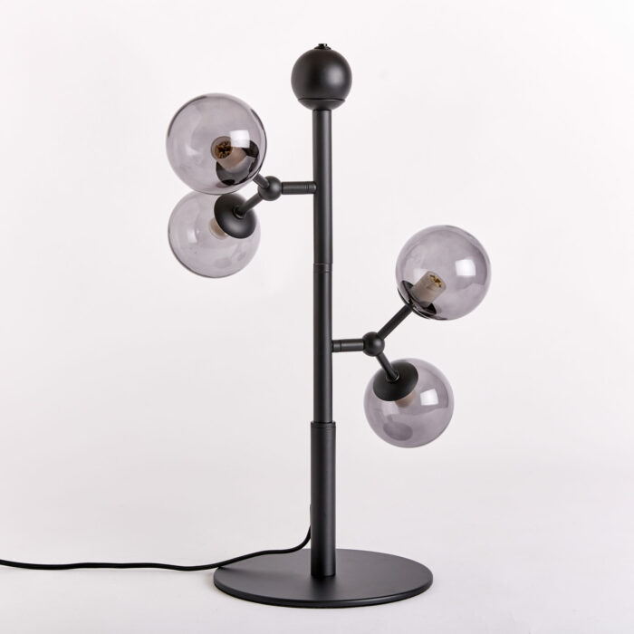 Lampen har en diameter på 22 cm og en højde på 52 cm, hvilket gør den til en iøjnefaldende, men stadig kompakt løsning til mange indretninger. De fire opalglas-skærme på Ø10 cm sikrer en blød og behagelig belysning, mens den sorte metalstruktur tilføjer et eksklusivt touch. Atom-lampen benytter 4 x G9-fatninger og understøtter en maks. effekt på 28W pr. lyskilde.