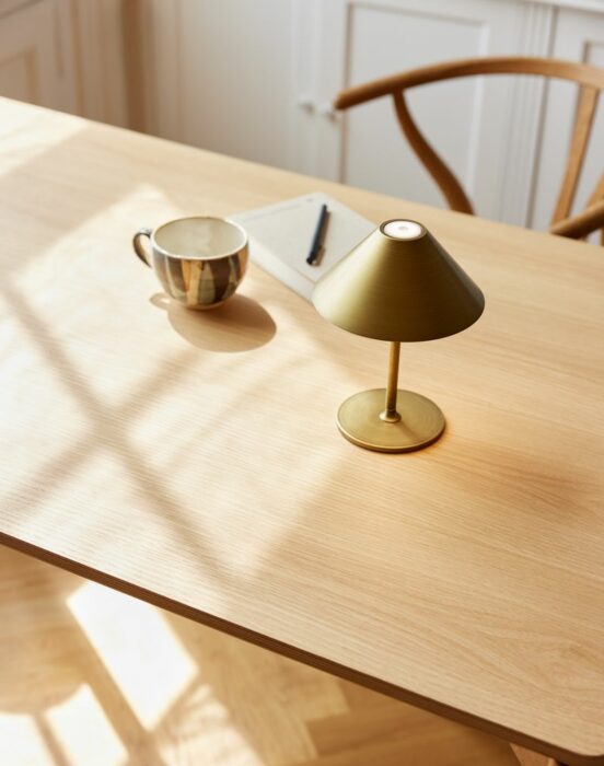 Denne bordlampe er skabt til at bringe varme og stemning ind i hverdagen, uanset hvor du placerer den.