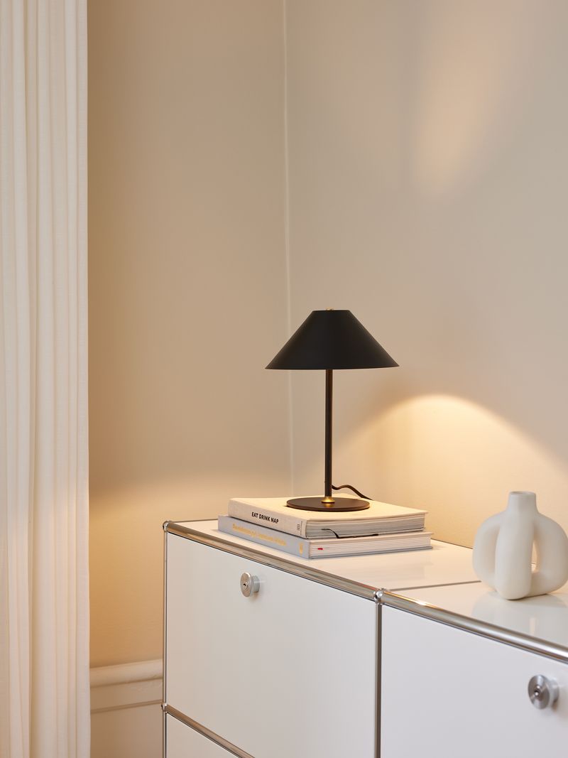 Det enkle formsprog og den dybe, grafitsorte farve gør lampen nem at integrere i forskellige stilarter – fra det skandinavisk lyse og lette til det mere industrielle og markante. Som en del af den populære Hygge-serie giver denne bordlampe dig mulighed for at skabe et sammenhængende lyskoncept i hele hjemmet, da serien findes i flere typer og farver.