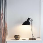 Bordlampen er udstyret med en fleksibel skærm, som kan drejes og vippes, så du nemt kan rette lyset præcist derhen, hvor du har brug for det. Det gør lampen ideel både som arbejdslys og som stemningsskabende belysning i hjemmet. Den sorte finish tilfører et elegant, industrielt udtryk, som giver karakter til enhver indretning.