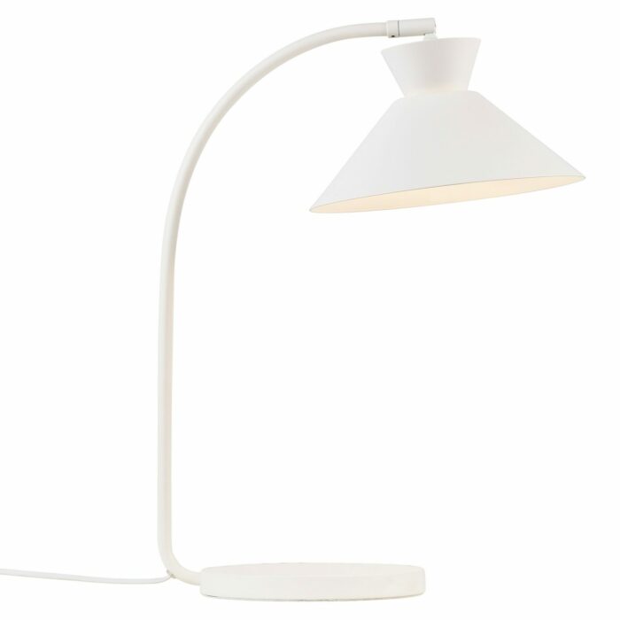 Dial bordlampen fra Nordlux er en stilren og elegant lampe, der forener klassisk design med moderne funktionalitet. Inspireret af ikoniske lysdesign fra 50’erne og 60’erne udstråler denne lampe en nordisk enkelhed med sine rene linjer og geometriske former. Den åbne lampeskærm sikrer en smuk og dekorativ uplight-effekt, der skaber en let og svævende fornemmelse, mens den kurvede lampestang tilføjer et blødt og harmonisk udtryk.
