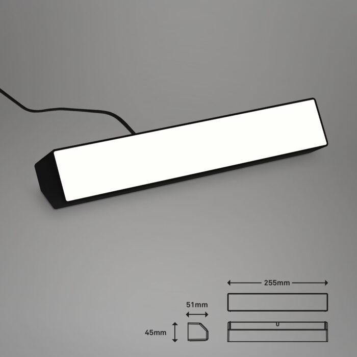 • Stilrent design: Den moderne sorte finish og det diskrete rektangulære design gør lampen til en smuk og funktionel tilføjelse til ethvert rum.