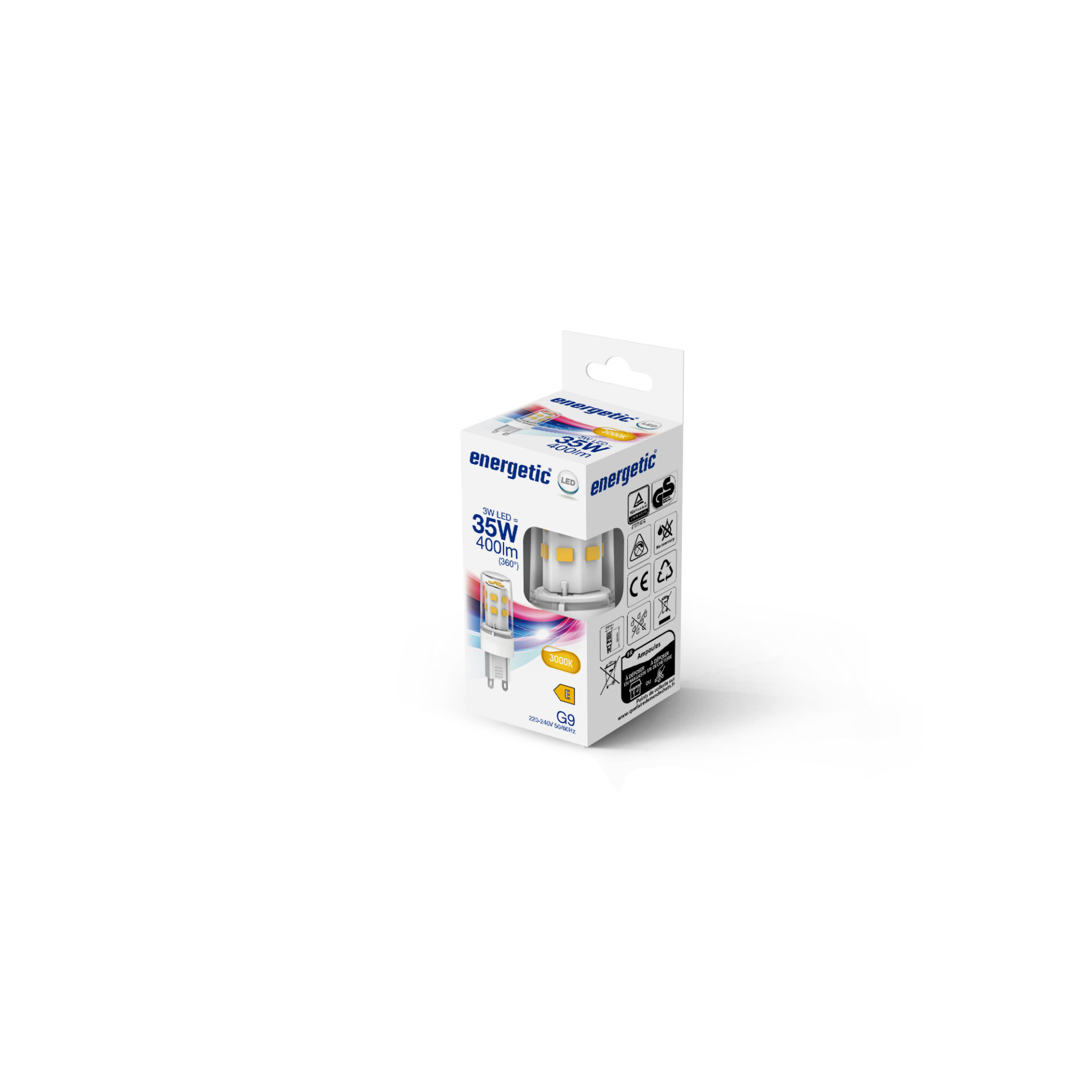 Lyskilde: LED G9, 3W, 400 lumen, 3000K, Ra 80, energiklasse F