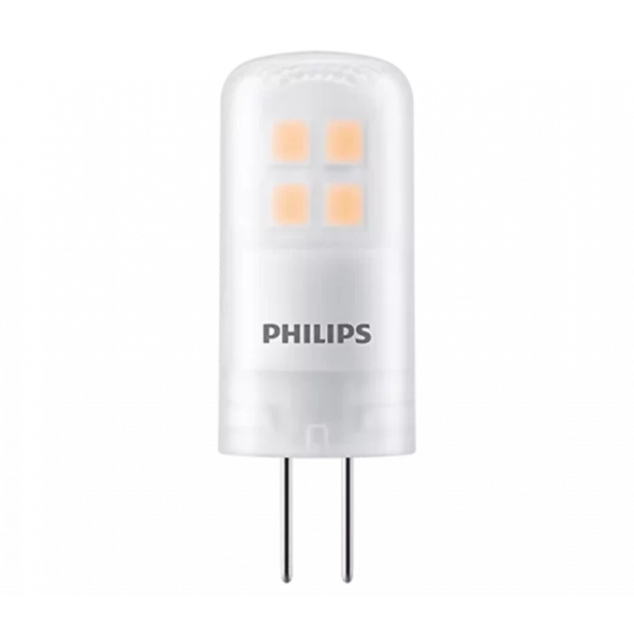 Philips LED G4 stiftpæren er ikke dæmpbar, men leverer en stabil og ensartet belysning uden flimmer. Med sin lave vægt på kun 0,01 kg og kompakte størrelse er den ideel til både nye installationer og som erstatning for ældre halogenpærer.