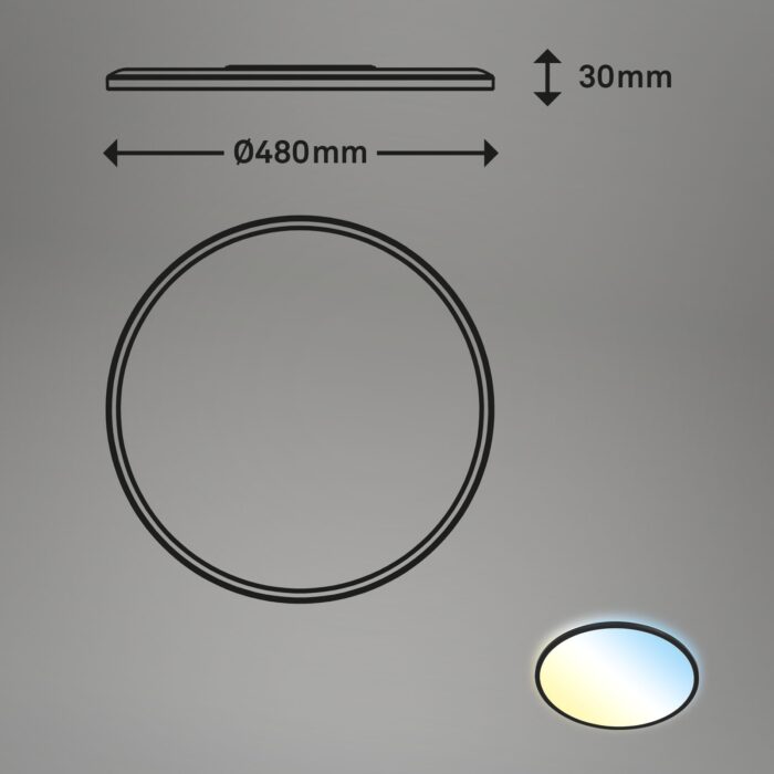 Opgrader din belysning med dette ultraflade CCT LED-panel, der kombinerer moderne design med avanceret teknologi. Med en diameter på 48 cm og en højde på kun 3 cm er denne loftslampe ideel til ethvert rum, hvor du ønsker en stilren og diskret belysning.