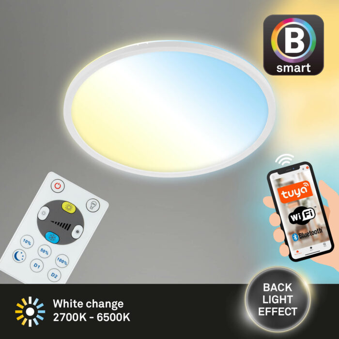 Lampens farvetemperatur er justerbar mellem 2700 - 6500 Kelvin (varm hvid - neutral hvid - kold hvid) - Lyset kan tilpasses dine individuelle behov. Alle disse muligheder kan indstilles med den medfølgende fjernbetjening eller APP.