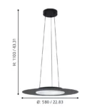 Designet i sortlakeret metal giver lampen et stilrent udtryk, der passer perfekt ind i moderne hjem. Med en diameter på 58 cm hænger den elegant i rummet og tilfører både funktion og atmosfære.