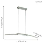 Eglo Pellaro hvid LED langbords pendel m. touch dæmper 110 cm