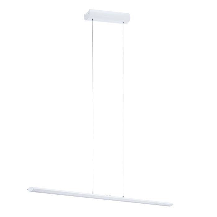 Eglo Pellaro pendellampe i hvid på 110 cm med integreret LED, 3200 lumen og touch-dæmper. Moderne pendel til spisebord og køkken.