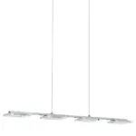 Denne elegante pendellampe kombinerer klar og satineret plastik med skinnende krom, hvilket giver et moderne og let udtryk, der passer perfekt over spisebordet, i køkkenet eller i stuen.