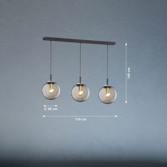 'Dini' har en imponerende længde på 110 cm og en bredde på 25 cm, hvilket gør den ideel over spisebordet eller som en central belysning i større rum. Med et overhæng på op til 140 cm fremstår lampen som en gennemført løsning til både klassisk og moderne interiør. Den frosted finish giver et blødt og behageligt lys, der understøtter dens elegante udtryk.