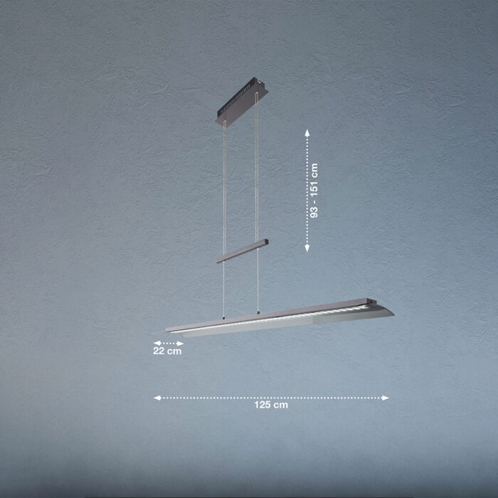 Opdag en elegant og funktionel belysningsløsning med denne moderne pendellampe fra det anerkendte mærke Fischer & Honsel. Model "Nana" er designet til at tilføre ethvert rum et strejf af stil og atmosfære, perfekt til både stuen og spisestuen. Med sin tidløse sand sorte finish og slanke metalstruktur passer lampen ind i moderne interiør, hvor funktionalitet og æstetik går hånd i hånd.