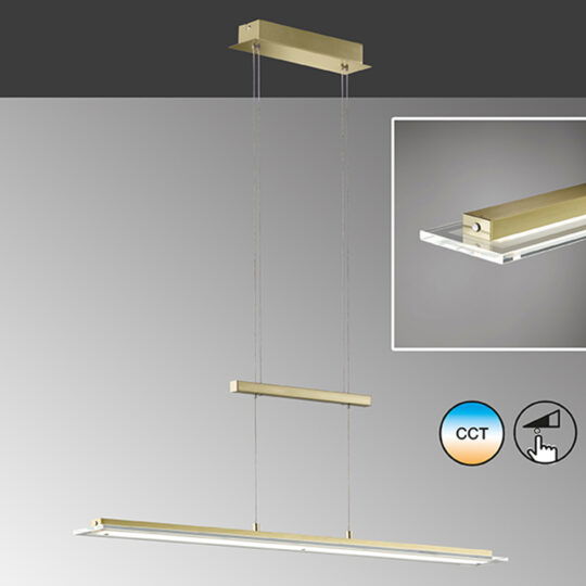 Fischer & Honsel Tenso TW pendellampe i mat messing med integreret LED, justerbart hvidt lys og højdejustering – moderne design med varm atmosfære.