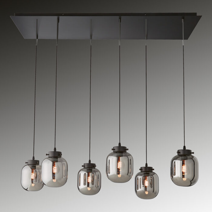 Regi er udstyret med seks fatninger af typen E27, hvilket giver mulighed for at skræddersy belysningen efter behov. Lyset kan dæmpes via en ekstern bagkantsdæmper, så du altid kan skabe den rette stemning – lige fra arbejdsbelysning til en blød, hyggelig glød. Lampen kræver seks lyskilder, som ikke medfølger, men den understøtter op til 40 watt pr. pære.