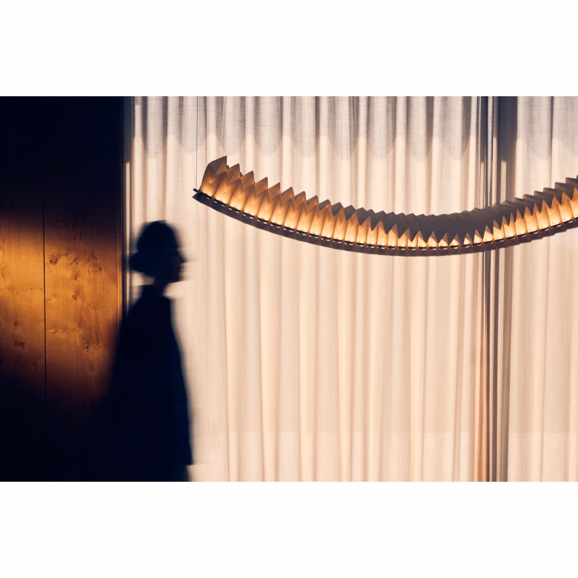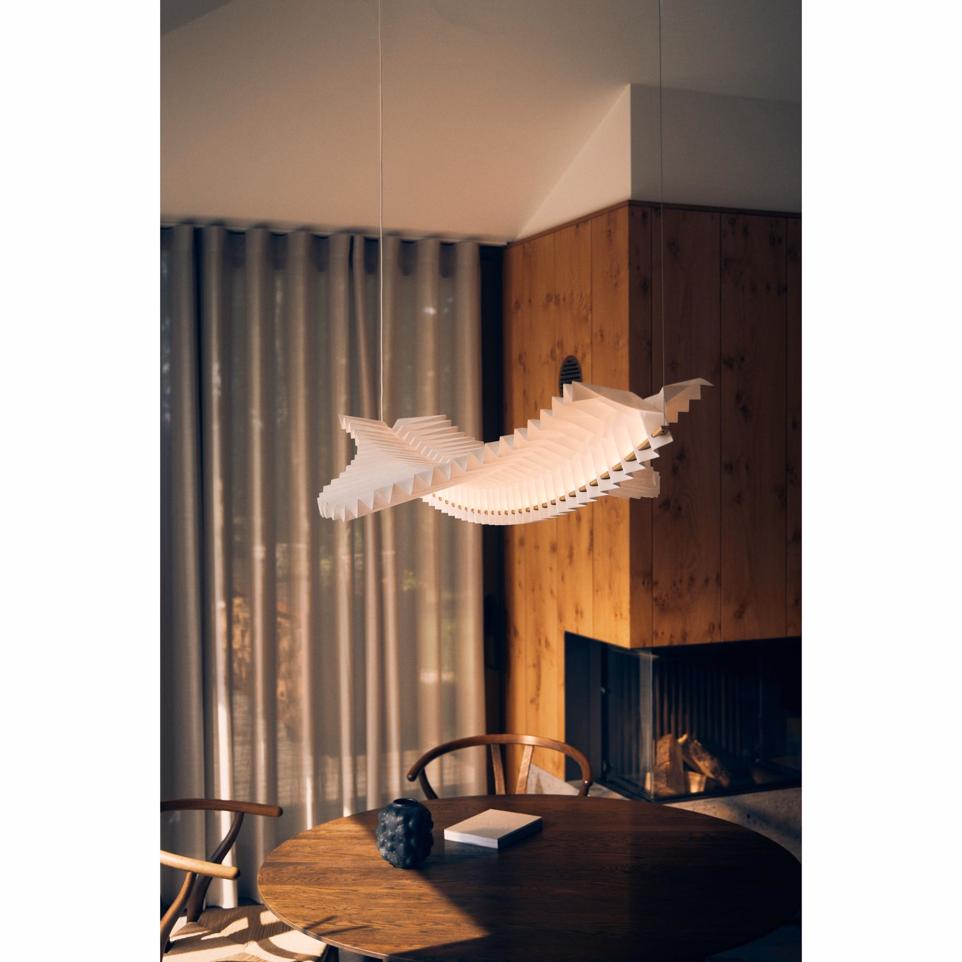 Sora er designet af den britiske duo Studio Fung & Bedford. Pendlen er håndlavet og fremstår som en skulptur i sig selv, hvor traditionelle japanske origamiteknikker er anvendt til at skabe lampens karakteristiske, svævende form og smukke, diffuse lysskær. Resultatet er en lampe med en klar og æstetisk aura, der tilfører rummet ro og elegance.