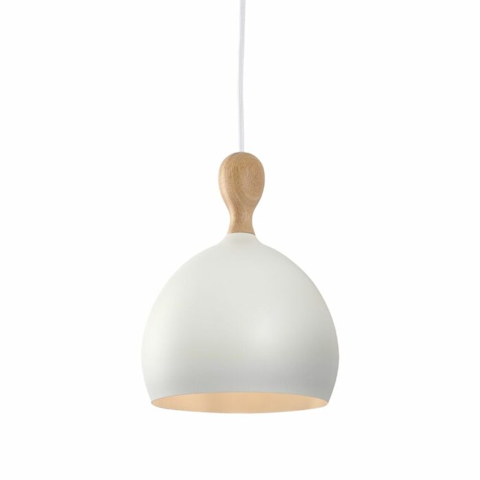 Halo Design Dueodde Ø39 hvid pendel kombinerer skandinavisk minimalisme med trædetaljer. Perfekt over spisebordet eller i stuen.