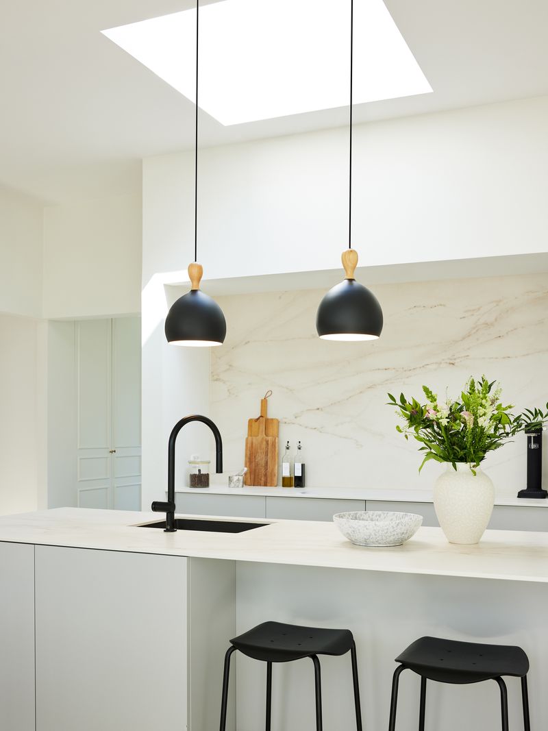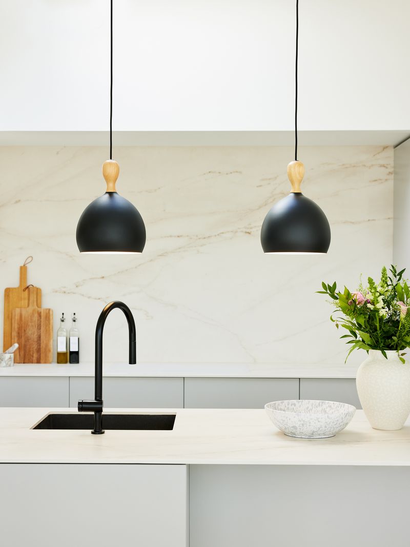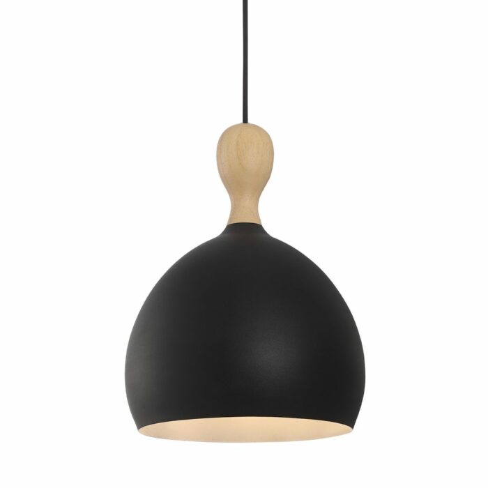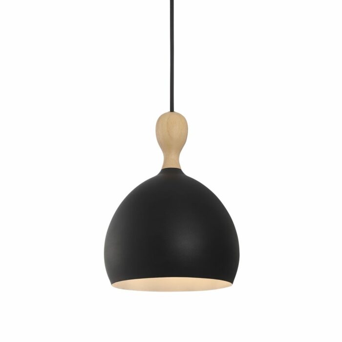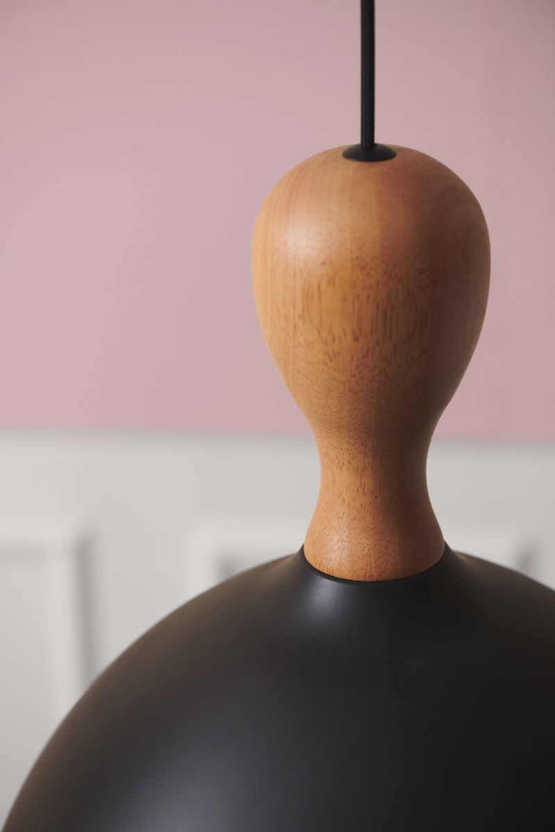 Halo Design Dueodde Ø39 sort pendel i metal og træ. Skandinavisk design, perfekt over spisebord eller i stuen.