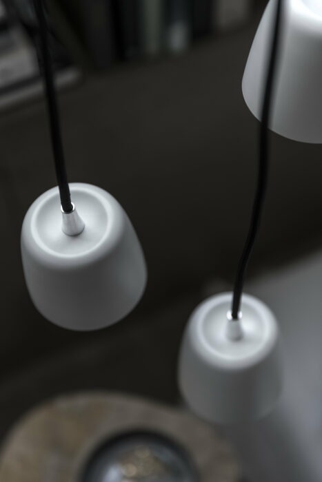 Disse løsninger har vi igennem de sidste 10 år anvendt i produktionen af LED belysning til køkkener og badeværelser, hvor de har bevist deres anvendelighed og holdbarhed. Derfor var det naturligt for os at tage disse erfaringer fra køkken og badeværelser - og i samarbejde med en anerkendt designer – fremstille belysningsløsninger til resten af hjemmets rum. Løsninger, hvor vi har bevaret den samme kvalitet af lyset og farvegengivelsen – kombineret med et smukt og nutidigt design, så man opnår ensartet lys i hjemmet, et lys som er til at leve i. Disse tanker og ideer er blevet til serien af Noir-pendler.