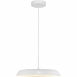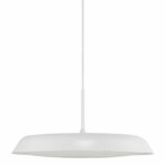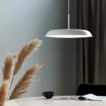 Nordlux Piso pendel i hvid med dim-to-warm LED. Minimalistisk design og ensartet lys – perfekt over spisebord eller køkkenø.