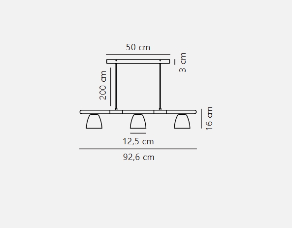Størrelse: Højde 16 cm / Bredde 88 cm / Længde 88 cm / Skærm Ø12,5 cm