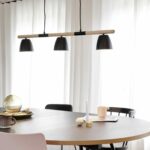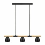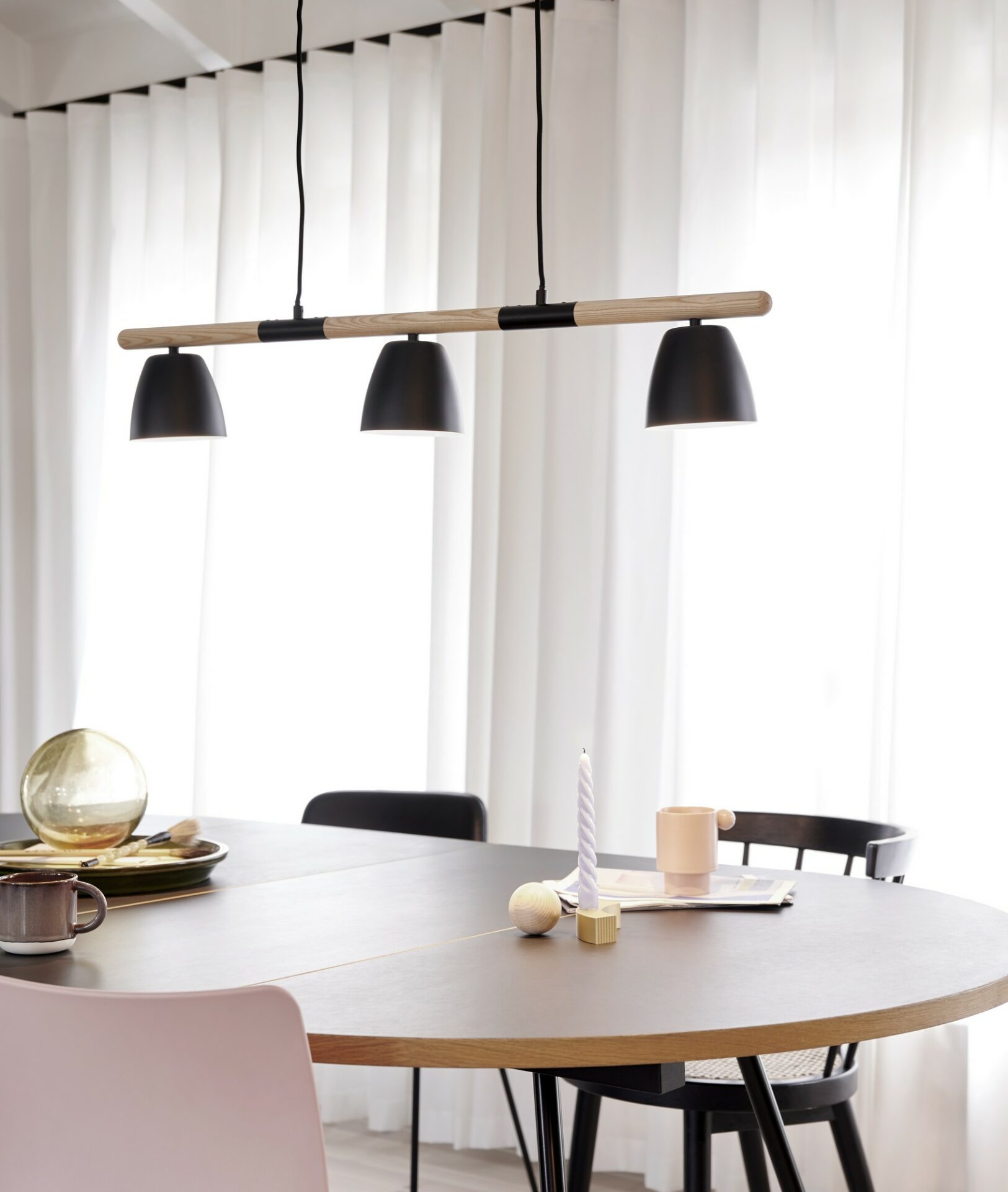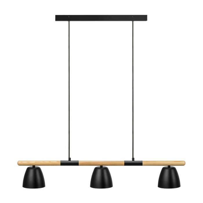 Nordlux Theo pendel i sort metal og asketræ – moderne 3-lyskilde lampe til spisebord