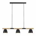 Nordlux Theo pendel i sort metal og asketræ med 3 lyskilder. Moderne, dæmpbar lampe perfekt til spisebord. Justerbar højde og nordisk design.