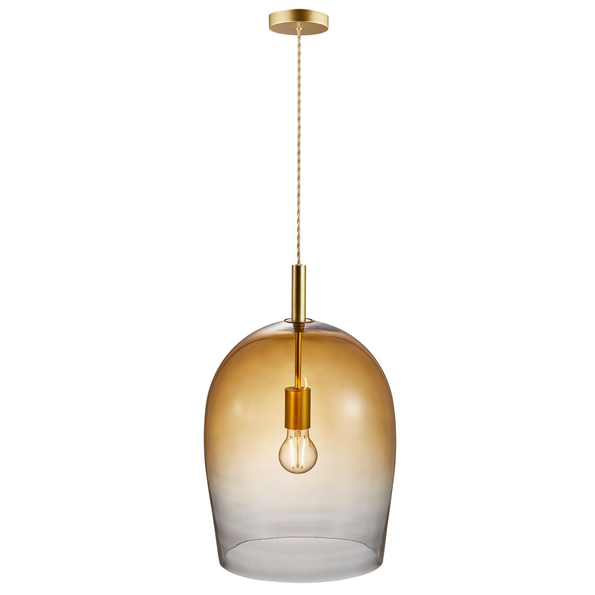 Nordlux Uma 30 Ravfarvet pendel i mundblæst glas. Moderne dekorativ lampe med E27-fatning og guld tekstilledning. Perfekt til stilfuld indendørs belysning.