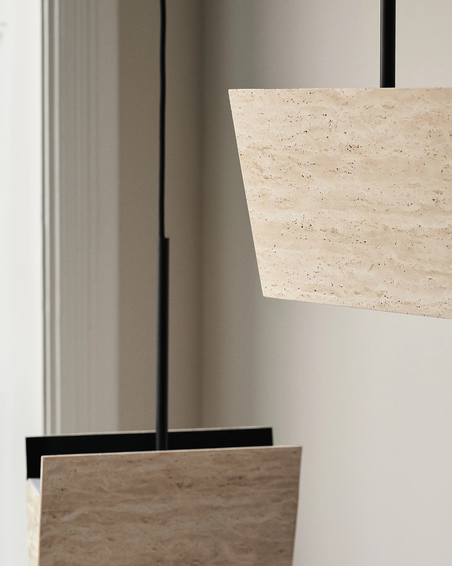 NORR11 Gallery pendel i travertin – eksklusiv designerlampe med stemningsfuldt op- og nedlys