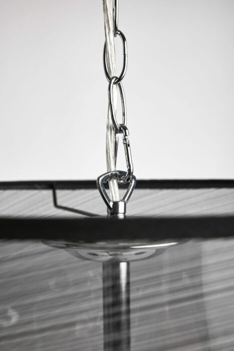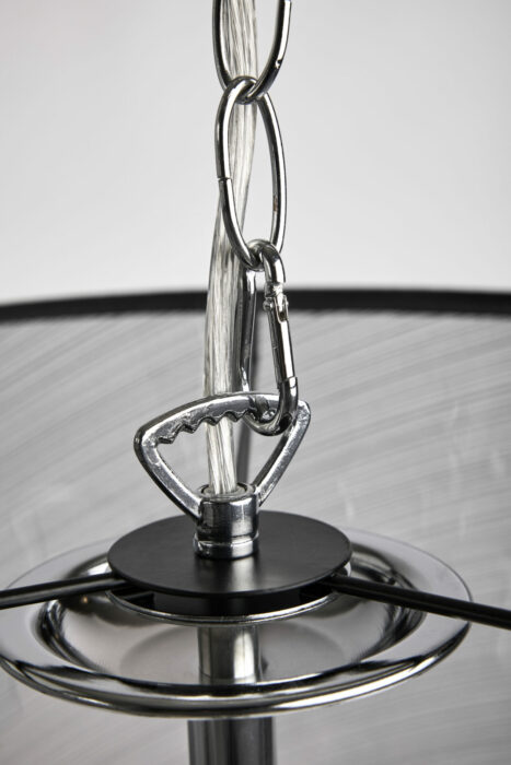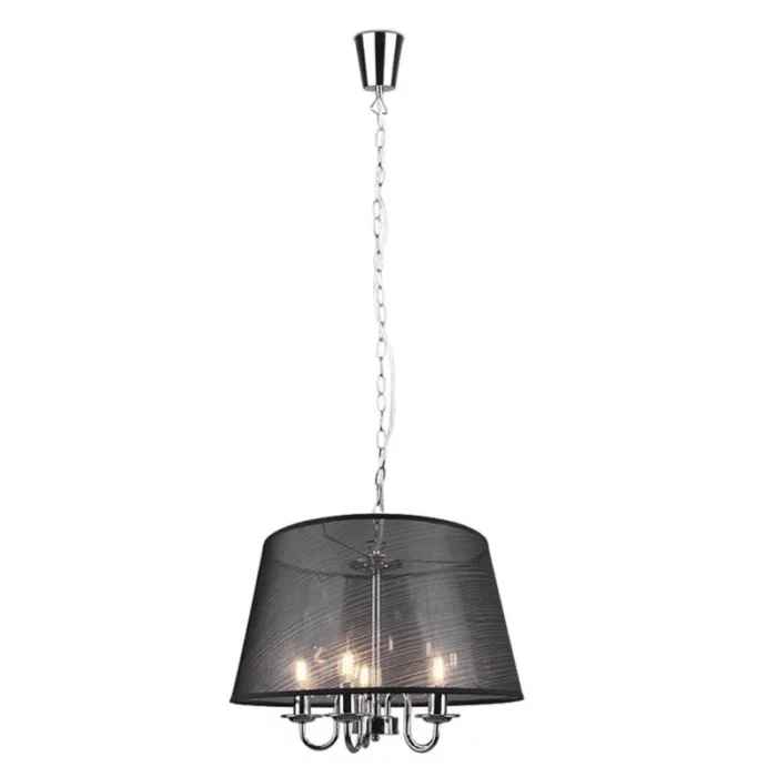 Reality Cima hængelampe forener elegance og funktionalitet med et stilfuldt design, der passer perfekt til både moderne og klassiske hjem. Med sin organiske balance mellem en sort metalstruktur og sort organza-skærme, skaber lampen et blødt og indbydende lys, der ideelt fylder rummet uden at blænde. Cima er designet med en højdejusterbar kædeophæng, hvilket gør det let at tilpasse lampen til ethvert spisebord, køkkenø eller stue. De fem E14-fatninger giver en flot lysstyrke, som kan tilpasses efter behov med de rette lyskilder.