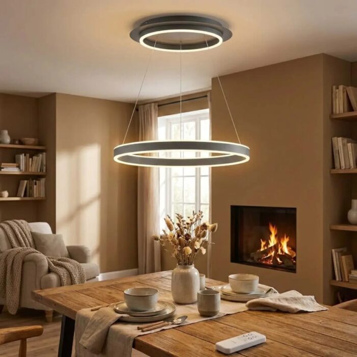 Kemi Wofi pendellampen fra Global Technics er en moderne og kraftfuld LED-hængelampe, designet til dig, der ønsker både fleksibilitet, høj lysstyrke og elegant æstetik i hjemmet. Med sine to individuelt styrbare lyskilder kan du skabe præcis den belysning, der passer til stemningen – lige fra funktionelt arbejdslys til blød, hyggelig atmosfære. Den medfølgende fjernbetjening gør det enkelt at tænde, slukke og dæmpe hver lyskilde separat, hvilket giver maksimal brugervenlighed i hverdagen.