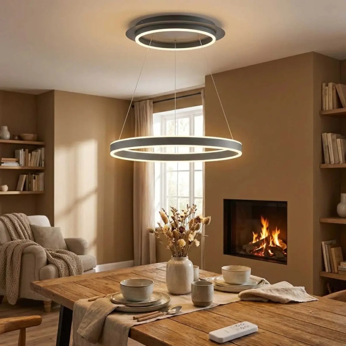 Lampens rene, antracitfarvede design kombineret med materialer i metal og plast gør den ideel over spisebordet, køkkenøen eller i stuen, hvor den tilføjer et moderne og eksklusivt udtryk. Med hele 83 W LED og imponerende 8200 lumen får du masser af lyskraft i en stilren indpakning – perfekt til større rum, der kræver ordentligt lys.