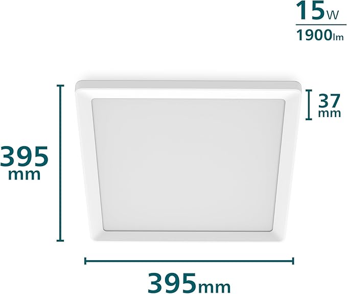 Det ultraslanke design på kun 4 cm i højden gør lampen særligt velegnet til rum med lav loftshøjde, hvor den smelter diskret sammen med loftet. Den brede flade på 40x40 cm sikrer en jævn og ensartet lysfordeling i hele rummet.