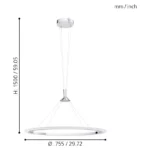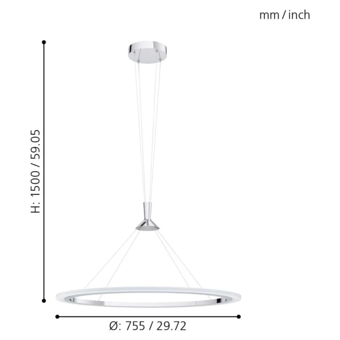 Lampens metalarmatur i mat krom passer perfekt ind i moderne hjem og skaber et stilrent udtryk. Den er 1500 mm høj, 515 mm bred og 755 mm lang, og vejer 4,6 kg – ideel til både spisestue, køkkenø eller stue.