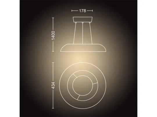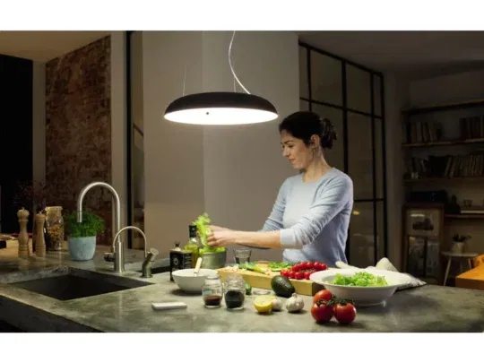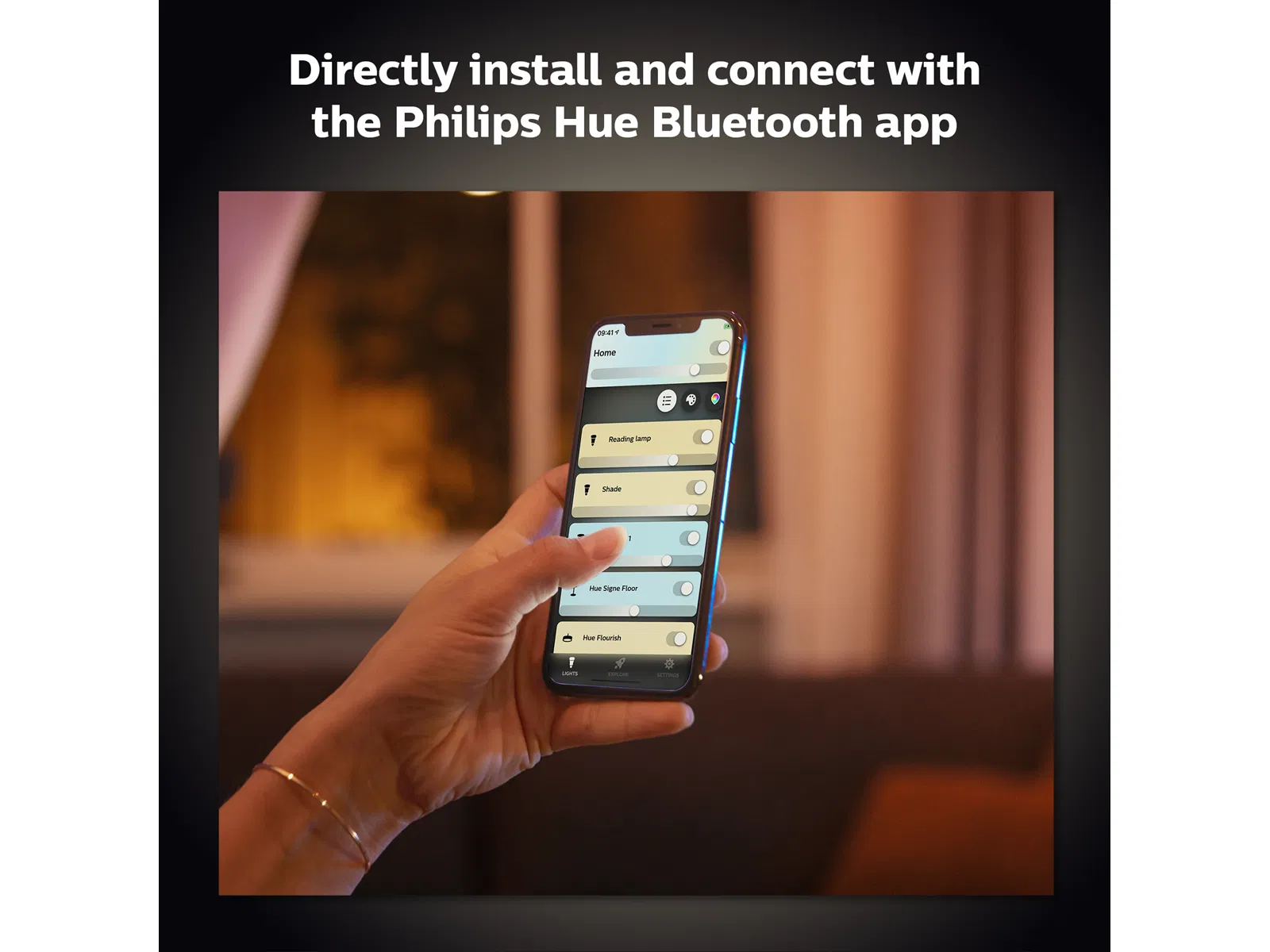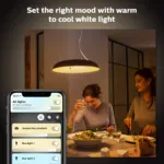 Med indbygget LED-lys, der leverer varmt til køligt hvidt lys (2200–6500 Kelvin) og en imponerende lysstyrke på 2900 lumen, kan du justere atmosfæren præcist efter dagens aktiviteter. Lampen kan styres via den medfølgende Hue Dimmer Switch, Bluetooth-app eller – når du tilføjer en Hue Bridge – med fuld adgang til Hue’s avancerede intelligente funktioner.